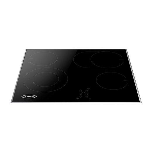 Κεραμική εστία, σε μαύρο χρώμα, με πλαίσιο inox και ψηφιακές ενδείξεις.