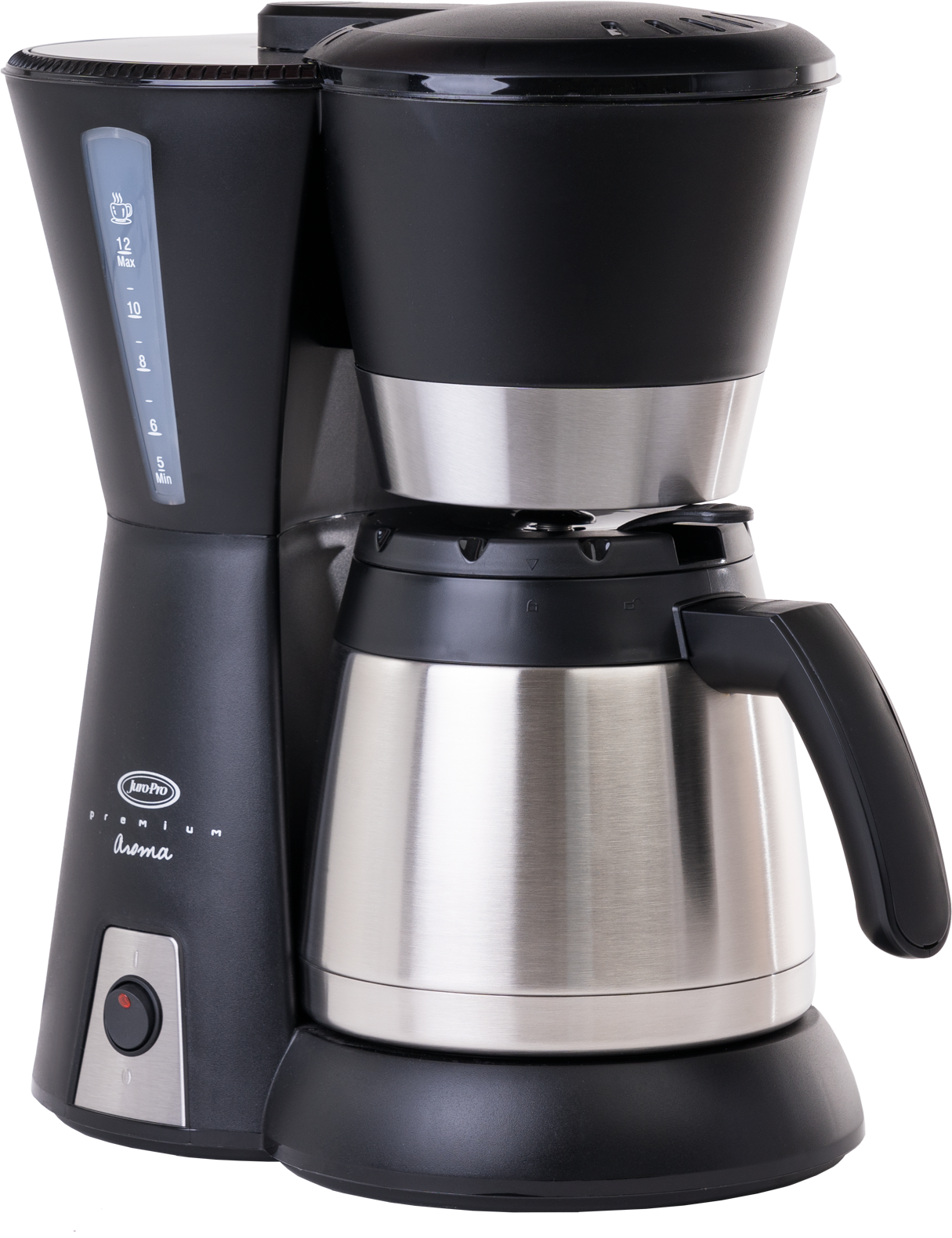 Καφετιέρα φίλτρου Αroma με ισχύ 800W και χωρητικότητα ως και 12 φλυτζάνια καφέ. Με κανάτα θερμός από ανοξείδωτο ατσάλι για να διατηρεί το καφέ ζεστό για μεγάλη διάρκεια.