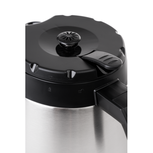Η Aroma σου διαθέτει κανάτα θερμός από ανοξείδωτο ατσάλι με διπλά τοιχώματα. Αυτό σημαίνει ότι ο καφές σου θα διατηρείται ζεστός για αρκετή ώρα. Επίσης κλειδώνει ώστε να μη στάζει για να μπορείς να πάρεις τη κανάτα θερμός μαζί σου.